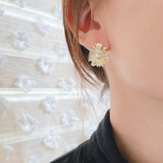 925 Sterling Silver Post Baroque Pearl Sunflower Stud Earrings