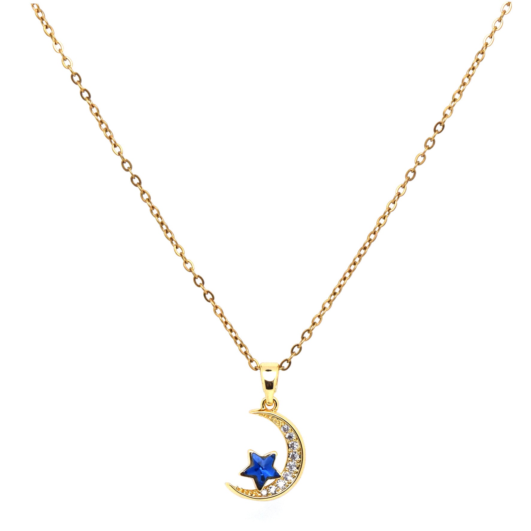 18k Gold Plated Stainless Steel Moon Sun Star Saturn Starburst Planet Pendant Necklace